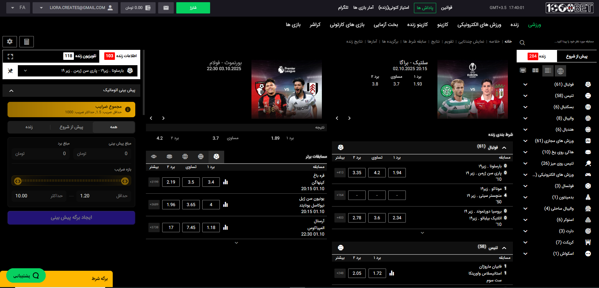 پیش بینی ورزشی در هزار بت شامل رشته های مختلف و لیگ های متنوع است و کاربران می توانند با انتخاب گزینه های مختلف شانس برد خود را افزایش دهند. ضرایب پیش بینی به روز است و امکان مقایسه با سایر سایت ها وجود دارد. محیط پیش بینی ساده و قابل فهم است و کاربران تازه وارد به راحتی می توانند شرط بندی کنند. کاربران حرفه ای می توانند با تحلیل آمار، روند تیم ها و مسابقات، تصمیمات بهتر و دقیق تری اتخاذ کنند.