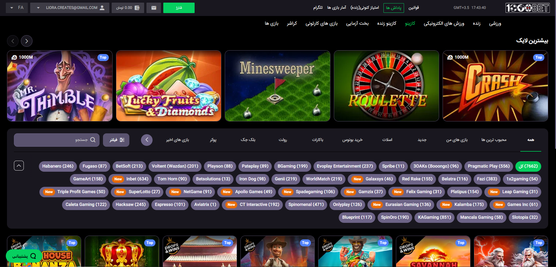 | بازی های کازینویی | انفجار ، رولت ، بلک جک و دیگر بازی ها |