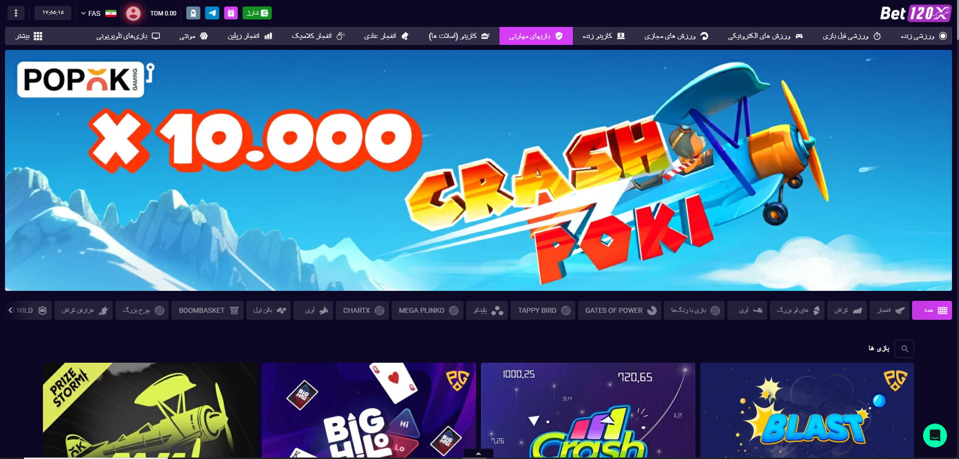 بازی انفجار bet120x