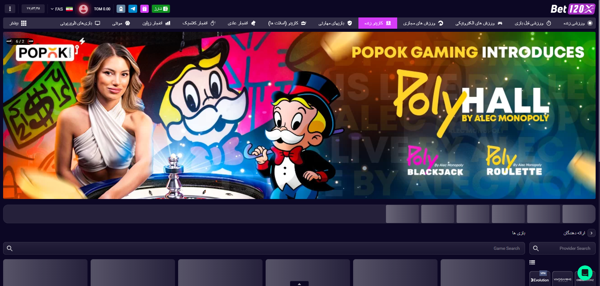 - کازینو زنده: تجربه بازی با دیلرهای واقعی و تعامل مستقیم با آنها در زمان واقعی.
