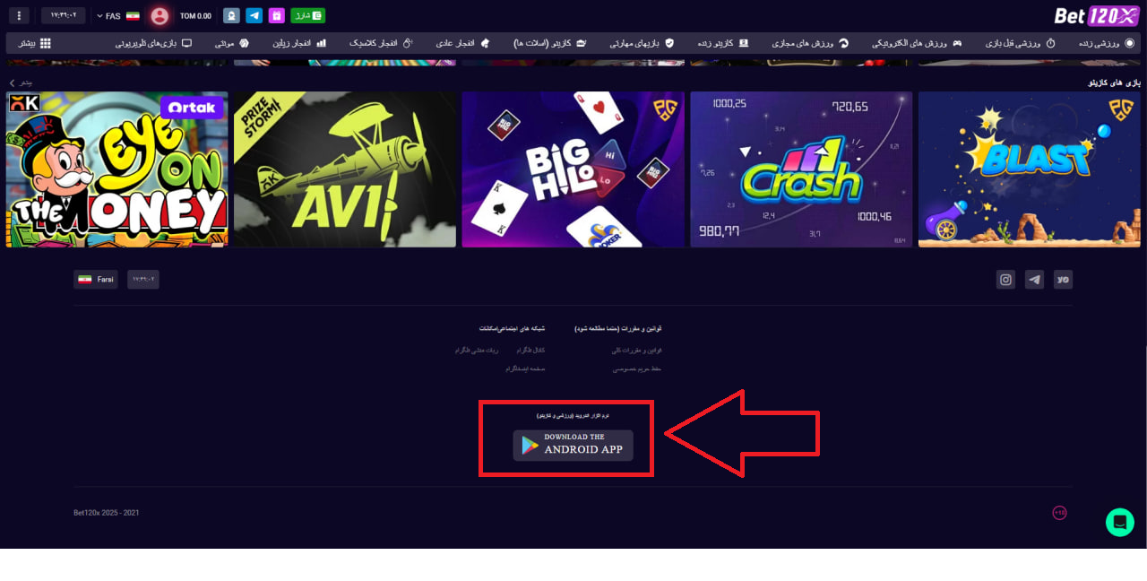 نصب اپلیکیشن بت ۱۲۰ ایکس