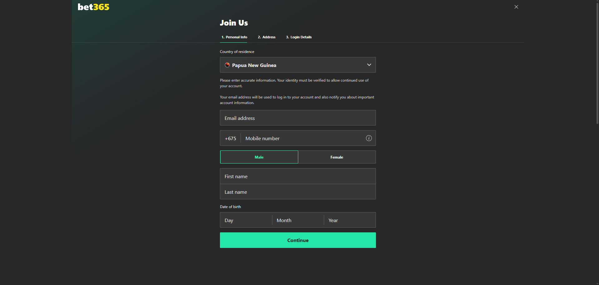 شماره تلفن معتبر باید هنگام ثبت نام وارد شود. این شماره برای تایید هویت و ارسال کدهای امنیتی استفاده می شود و نقش مهمی در ارتباط های بعدی با سایت Bet 365 دارد.