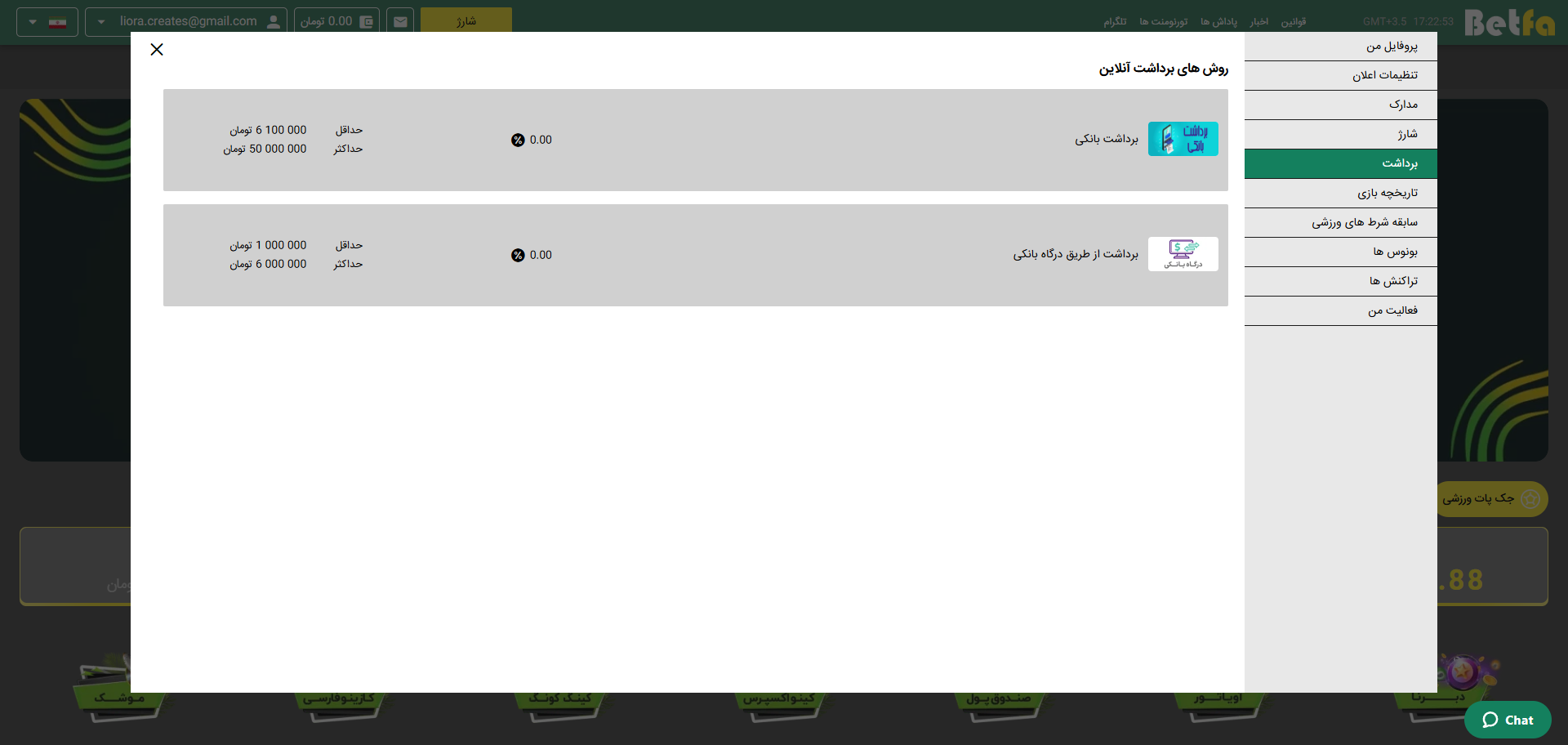چه روش هایی برای شارژ حساب در بت فا وجود دارد؟