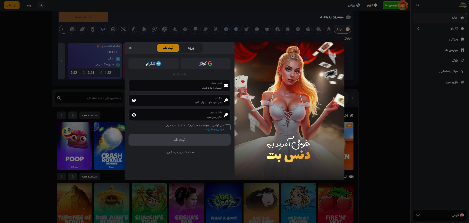 - ثبت نام در دنس بت چگونه انجام می شود؟