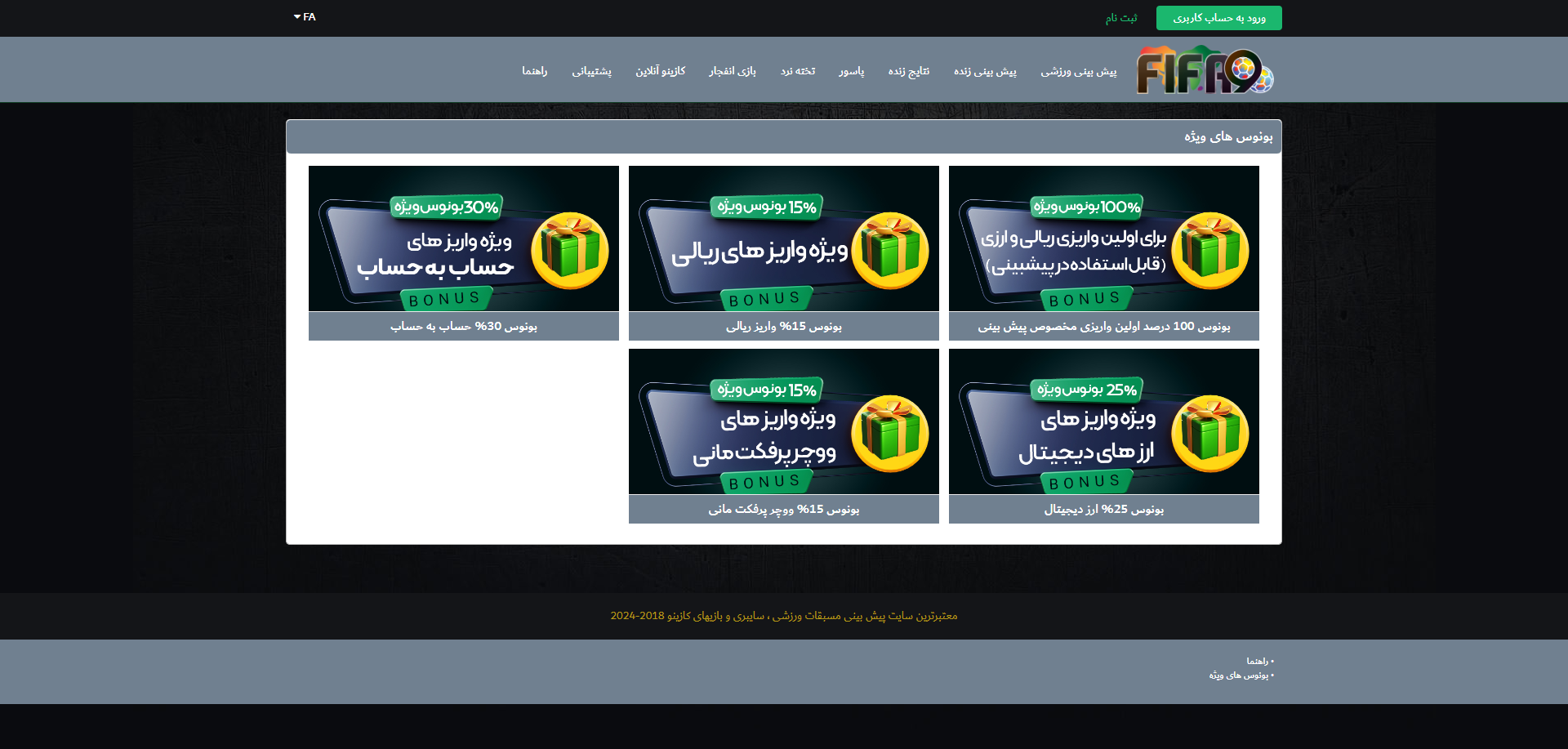 این پست درباره سایت شرطبندی فیفا ۹۰ (Fifa90) فیفا 90 بدون فیلتر است. سایت فیفا ۹۰ (Fifa90) یک دنیای هیجان انگیز و پر از فرصت های برد برای علاقه مندان به شرط بندی آنلاین است. این سایت معتبر ایرانی از سال 2018 فعالیت خود را آغاز کرده و با ارائه پیش بینی های ورزشی، بازی های کازینویی آنلاین و کازینوی زنده، تجربه ای متفاوت و مهیج برای کاربران فراهم می کند.
