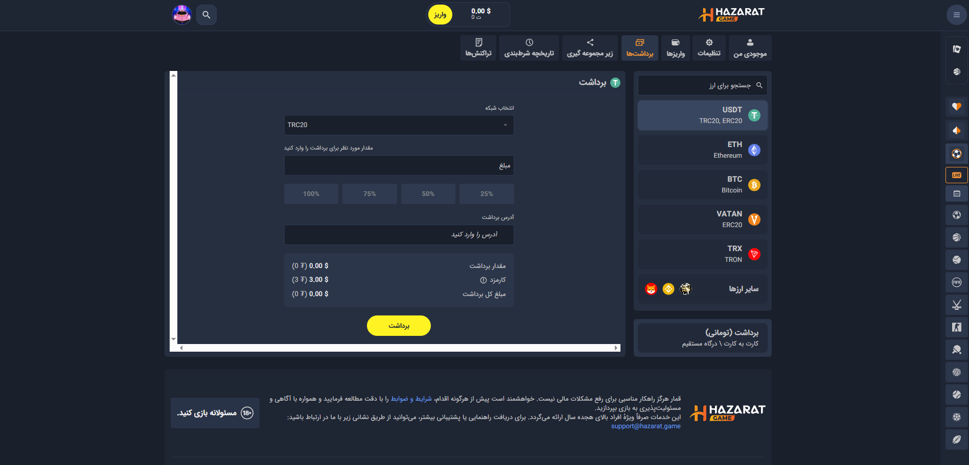 برداشت از حساب در سایت حضرات نیز مانند شارژ کردن به سادگی انجام می شود. کاربران پس از ثبت شرط و کسب سود می توانند درخواست برداشت خود را ثبت کنند. فرآیند برداشت معمولا از طریق شماره شبا یا کارت بانکی صورت می گیرد و زمان انجام آن بسته به روش انتخابی متفاوت است. سایت تلاش کرده تا پرداخت ها در کوتاه ترین زمان ممکن انجام شود تا اعتماد کاربران حفظ شود.