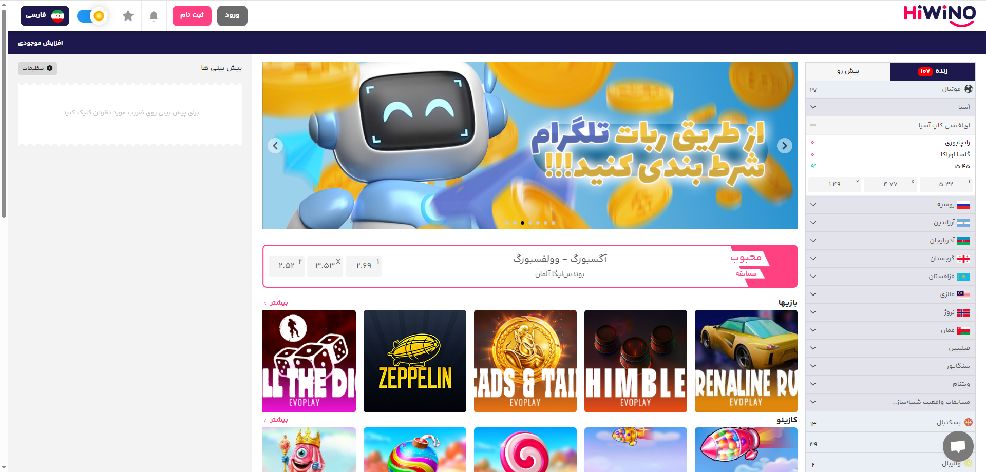سایت با ارائه ضرایب رقابتی و امکان پیش بینی زنده، تجربه ای جذاب و هیجان انگیز برای کاربران فراهم می کند. به همین دلیل Hiwino به مرور توانست به یکی از سایت های معتبر و پرطرفدار در زمینه پیش بینی و بازی های آنلاین تبدیل شود.