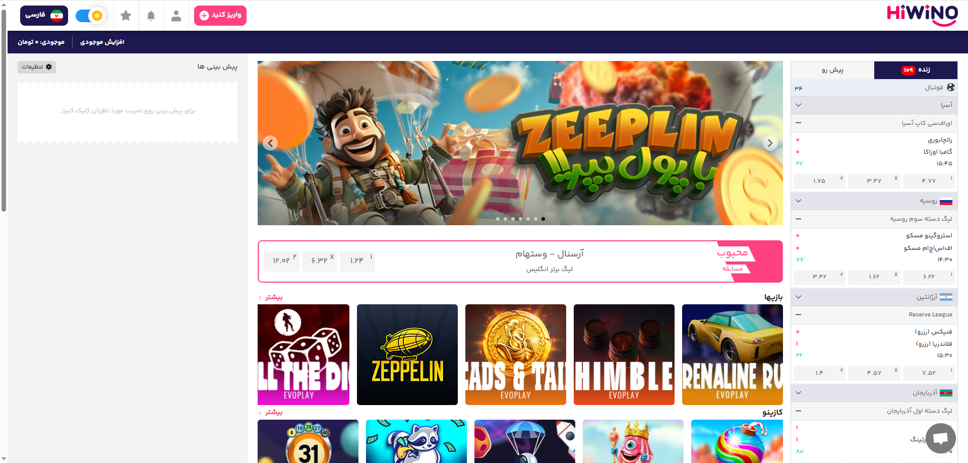 شرط بندی قبل از بازی در Hi Wino به کاربران این فرصت را می دهد که پیش بینی خود را با دقت و بر اساس تحلیل داده ها انجام دهند گزینه هایی مثل برد تیم ها تعداد گل ها نتیجه نیمه اول یا دوم و سایر انتخاب ها در دسترس هستند این نوع شرط بندی زمان بیشتری برای برنامه ریزی و تحلیل در اختیار کاربران قرار می دهد.