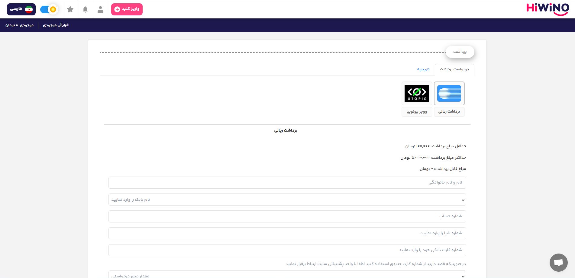 حداقل مبلغ برداشت: 2 دلار
