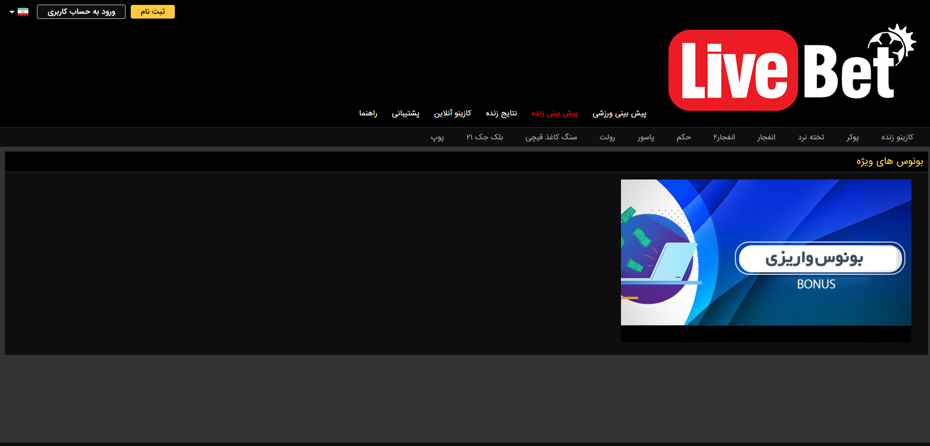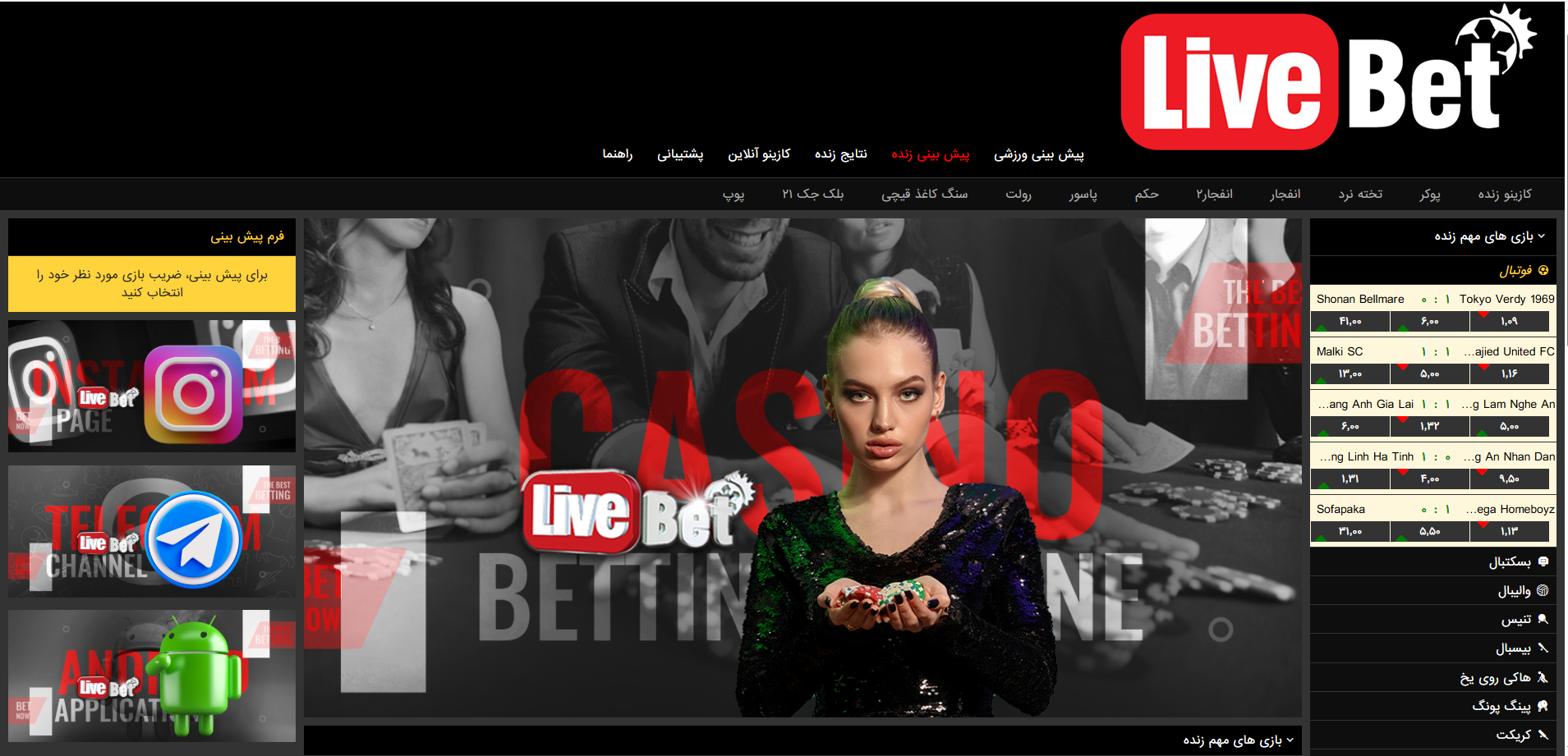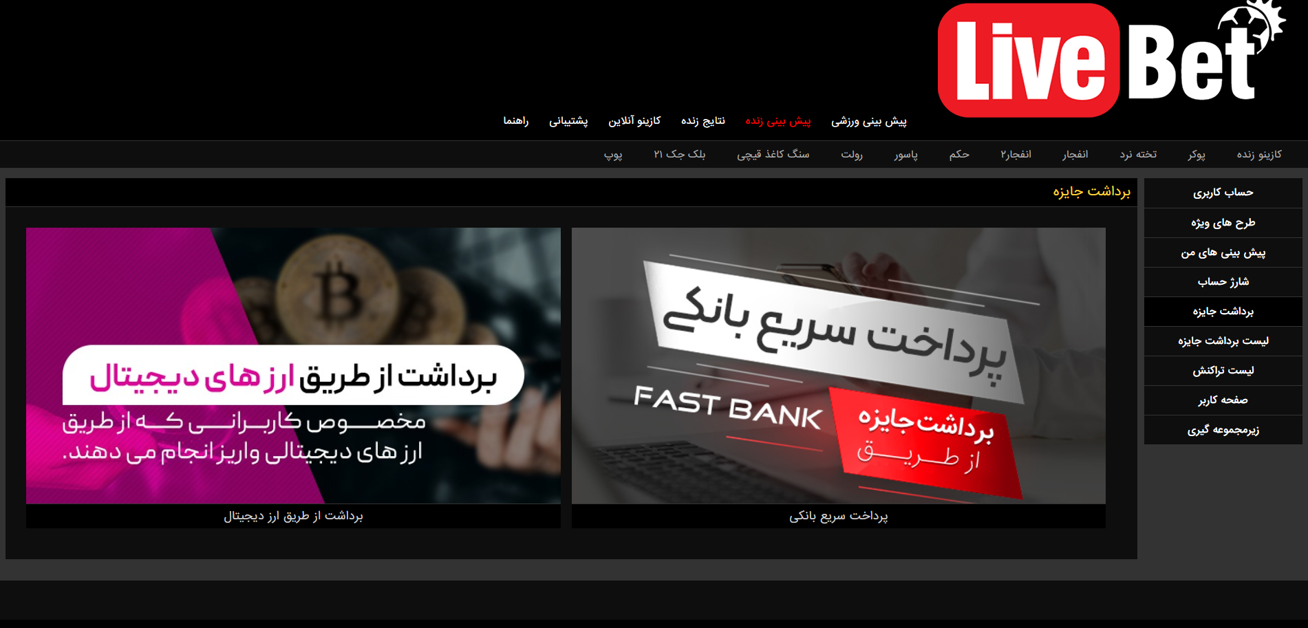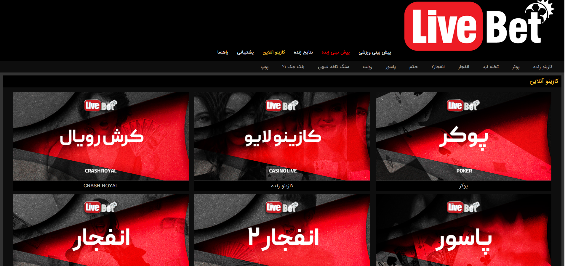 سایت Live bet یک پلتفرم جامع است که امکانات مختلفی برای کاربران ارائه می دهد. در این سایت می توان بازی های کازینویی، شرط بندی ورزشی و بازی های زنده را تجربه کرد. محیط سایت ساده و قابل دسترس است و کاربران می توانند به راحتی بین بخش های مختلف جابجا شوند. استفاده از Live bet برای افرادی که با بازی های آنلاین آشنا هستند، تجربه روان و نسبتا خوبی فراهم می کند. همچنین پشتیبانی سایت در دسترس است و می توان در صورت نیاز با تیم پشتیبانی ارتباط برقرار کرد.