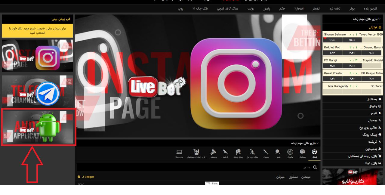 اپلیکیشن Live bet برای دستگاه های اندروید و iOS طراحی شده است. کاربران می توانند با نصب اپلیکیشن به راحتی به تمام امکانات سایت دسترسی داشته باشند. محیط اپلیکیشن ساده و مشابه نسخه وب است و کاربران به راحتی با آن ارتباط برقرار می کنند. سرعت اجرای اپلیکیشن مناسب است و بازی ها بدون تاخیر اجرا می شوند. اپلیکیشن امکاناتی مانند شارژ حساب، برداشت، مشاهده تاریخچه شرط ها و دریافت بونوس را فراهم می کند.