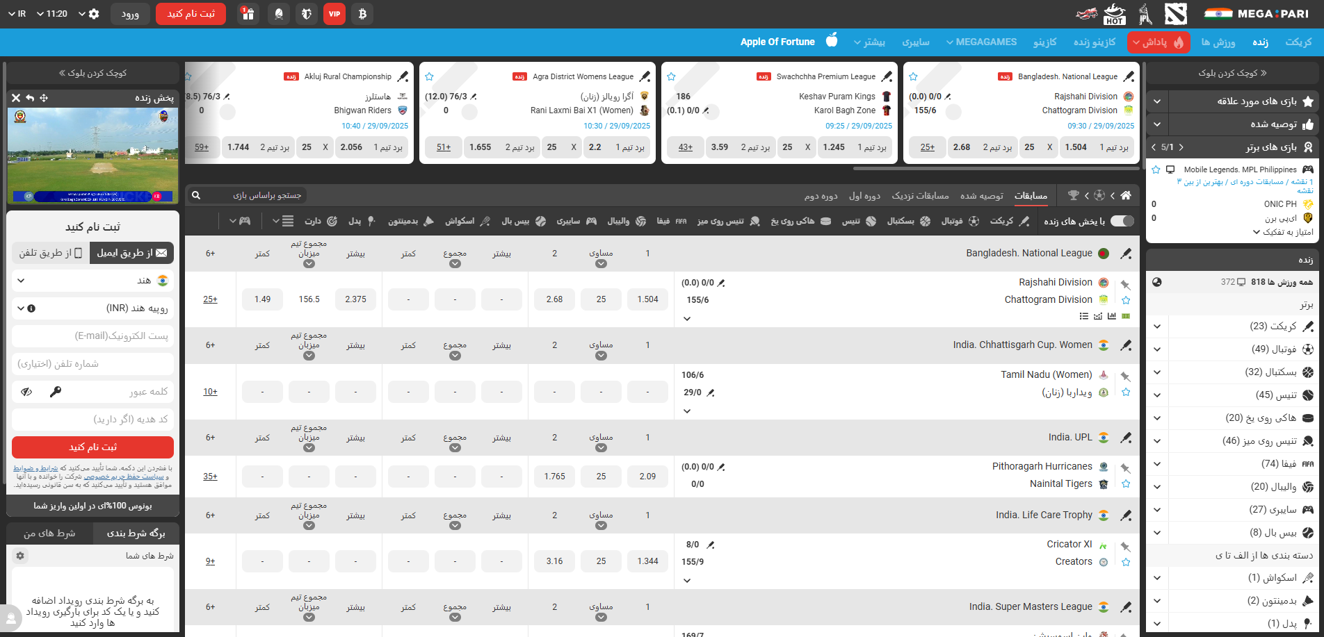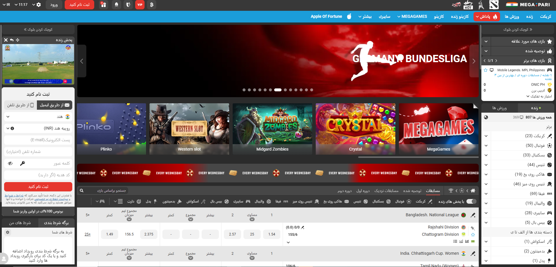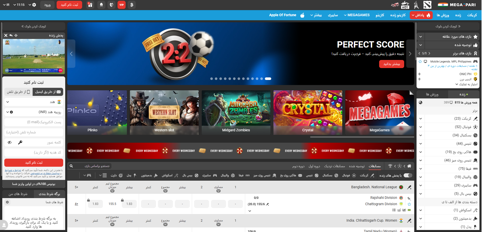 انتخاب بخش مورد نظر: مگاپاری امکان شرط بندی در بخش های متنوعی مانند پیش بینی مسابقات ورزشی، کازینو آنلاین، بازی های زنده و بازی های انفجار را فراهم کرده است. کاربران بسته به علاقه خود، بخش دلخواه را انتخاب می کنند.