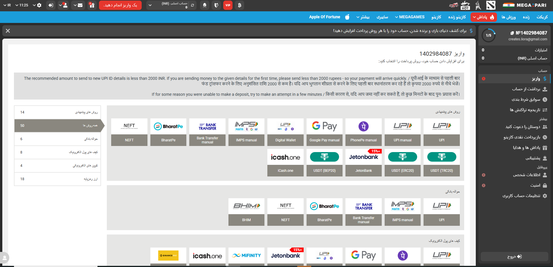 چگونه می توان حساب خود را در مگا پاری شارژ کرد؟