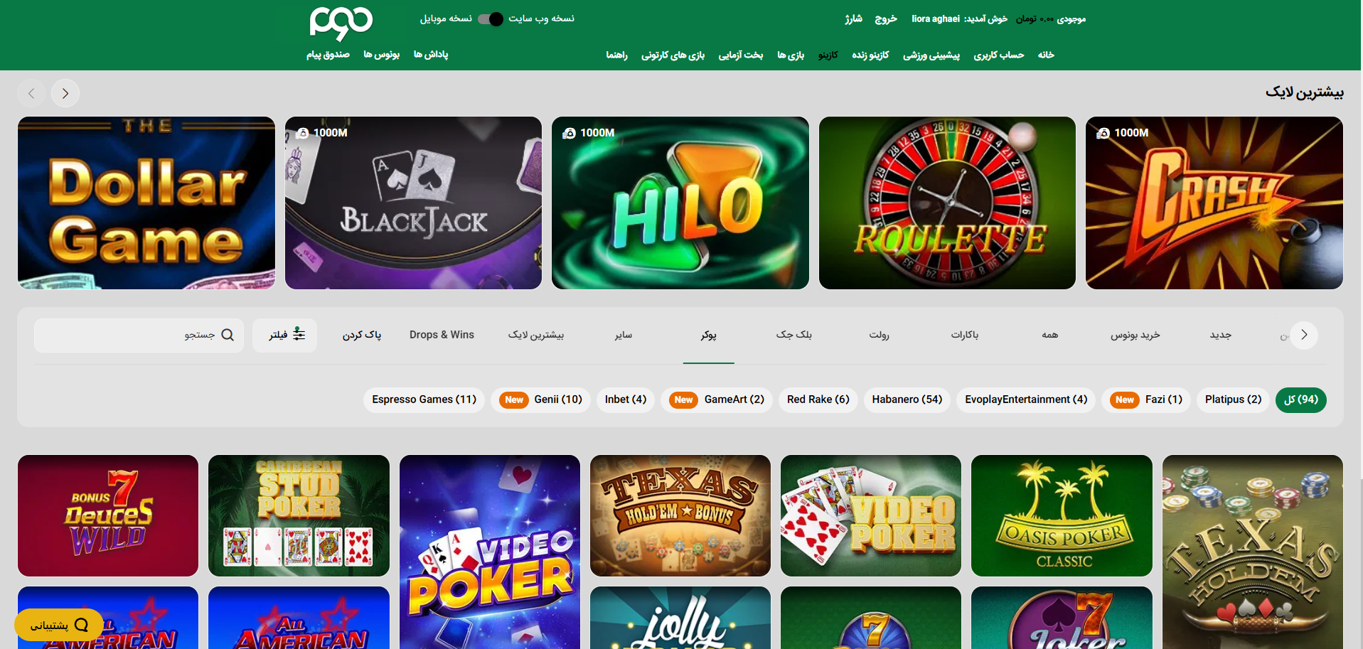 کازینو آنلاین پارس 90 با مجموعه ای از بازی های متنوع مانند رولت، بلک جک، پوکر، اسلات و بازی های ایرانی توانسته جایگاه ویژه ای بین کاربران پیدا کند. این بخش فضایی مشابه کازینو های واقعی را ایجاد کرده و حتی برخی بازی ها با دیلر زنده اجرا می شوند. سطح شرط بندی در این کازینو از مبالغ پایین تا میز های ویژه با سرمایه بالا متغیر است، بنابراین همه کاربران با هر بودجه ای می توانند وارد شوند. گرافیک جذاب، موسیقی پس زمینه و سرعت بالای اجرای بازی ها، تجربه ای متفاوت ایجاد می کند. علاوه بر این، تورنمنت های دوره ای و جوایز ویژه برای بازیکنان فعال در نظر گرفته شده است. در مجموع، کازینو پارس 90 یکی از بخش های پر طرفدار سایت محسوب می شود.