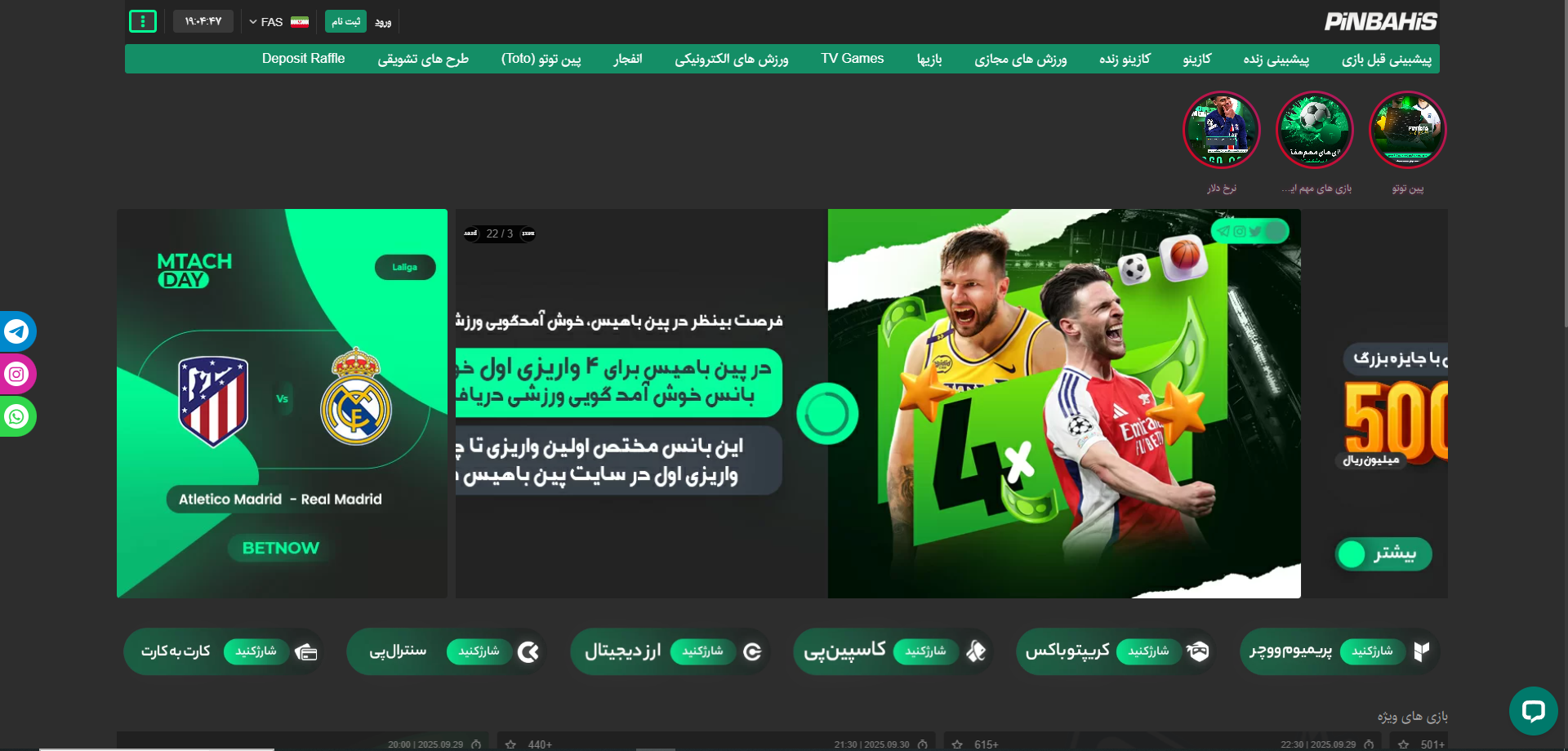 سایت اصلی پین باهیس یک پلتفرم معتبر برای پیش بینی و بازی های کازینو آنلاین است که کاربران می توانند با ثبت نام سریع به تمامی امکانات آن دسترسی پیدا کنند. این سایت با ارائه ضرایب مناسب و پوشش گسترده مسابقات ورزشی توانسته محبوبیت زیادی در بین کاربران پیدا کند. دسترسی آسان و محیط کاربر پسند از ویژگی های مهم پین باهیس محسوب می شود.