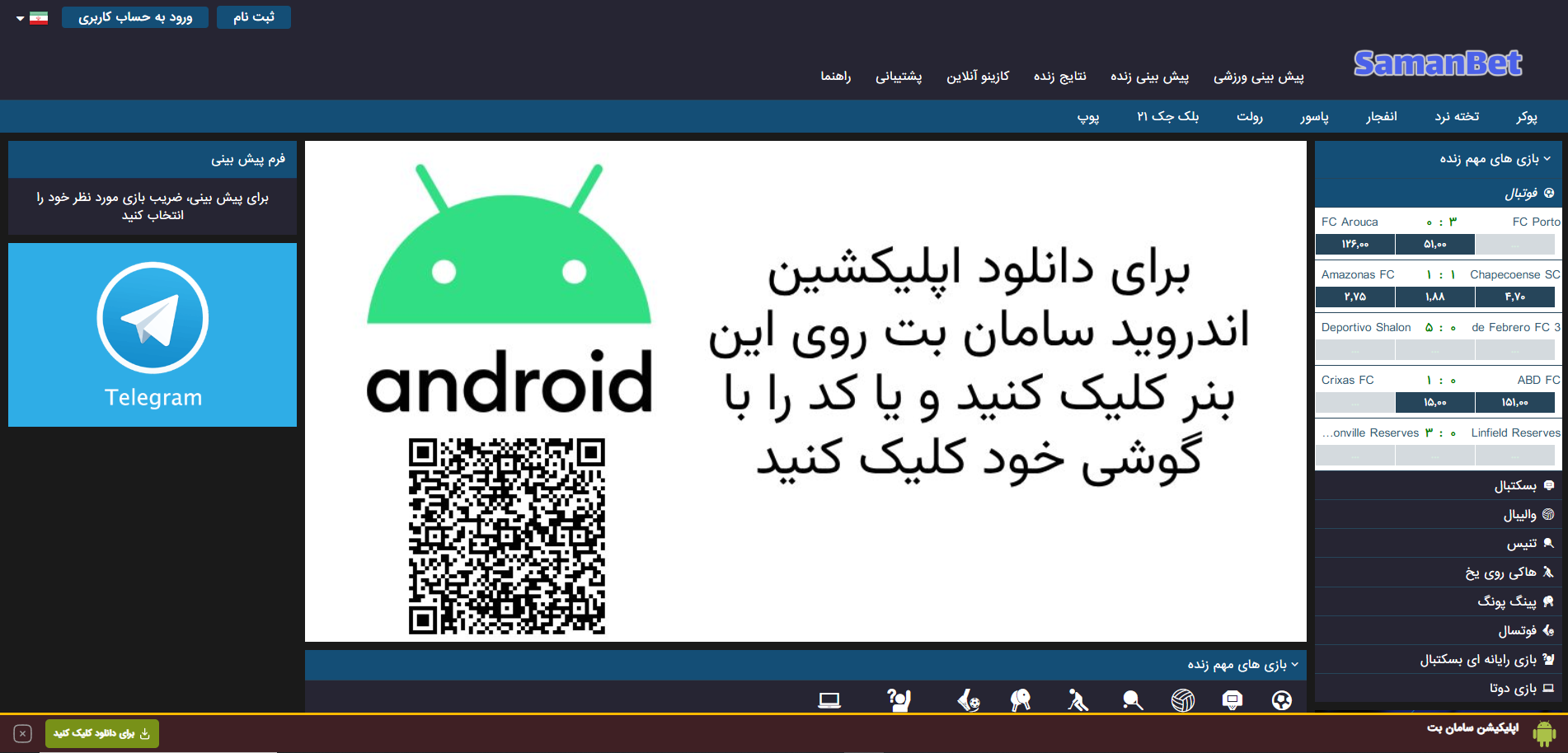 در همین صفحه نیز لینک دانلود اپلیکیشن سامان بت قرار داده شده تا بتوانید به راحتی آن را دریافت و روی دستگاه خود نصب کنید.