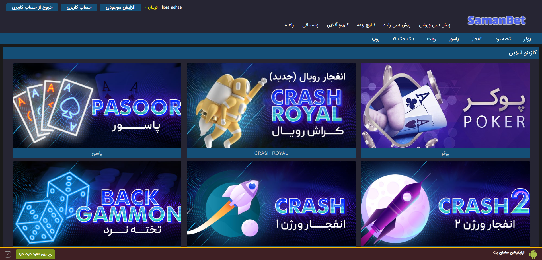علاوه بر بخش ورزشی، سامان بت یک کازینو آنلاین متنوع نیز دارد که شامل بازی هایی مانند پوکر، رولت، بلک جک، انفجار و تخته نرد می شود. همین تنوع باعث شده سامان بت یکی از گزینه های محبوب برای کاربران ایرانی باشد.