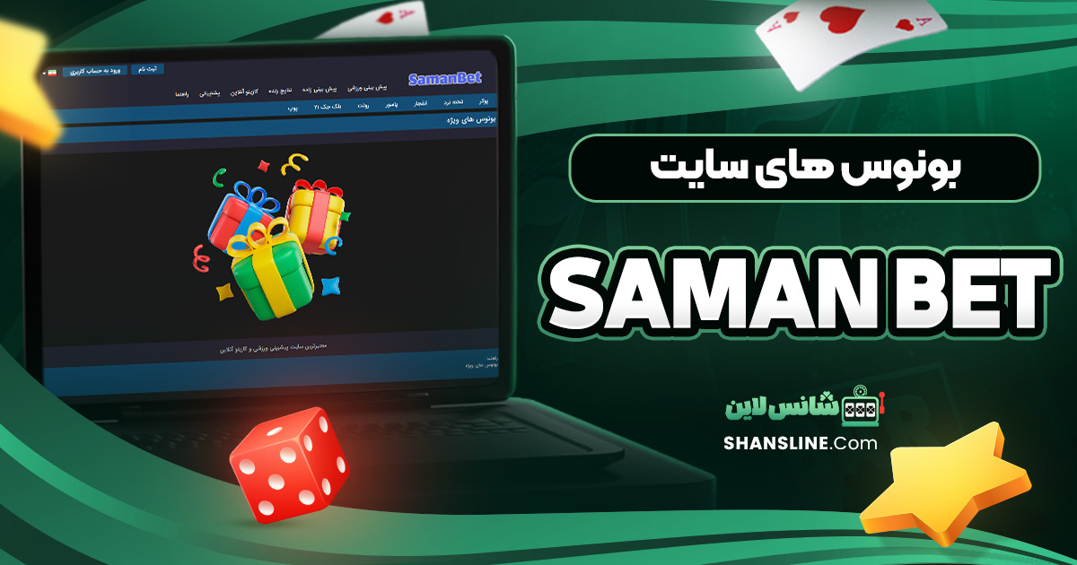 در حال حاضر، سایت سامان بت هیچ گونه بونوس یا پاداش فعالی ارائه نمی دهد. به این معنا که هنگام شارژ حساب کاربری یا پس از انجام فعالیت های خاص، هدیه ای از سوی سایت به کاربران تعلق نمی گیرد.