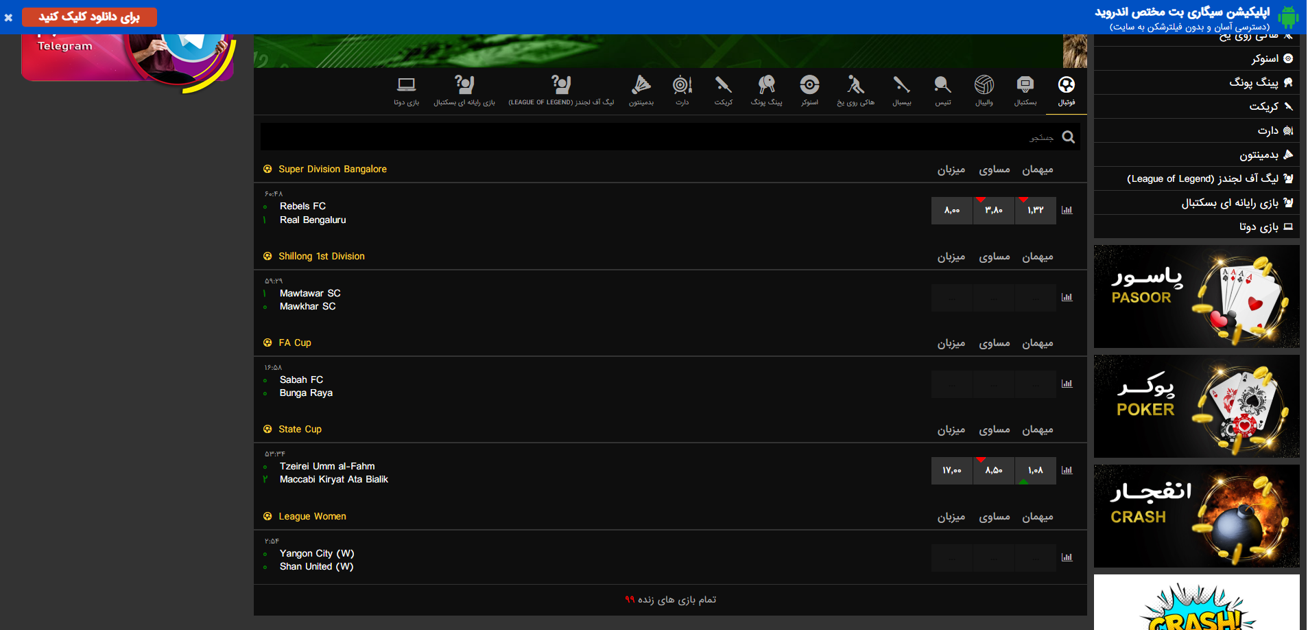اپلیکیشن را می توانید از سایت اصلی، کانال تلگرام رسمی یا لینک های معتبر دانلود کنید و با استفاده از آن بدون نیاز به فیلترشکن و با سرعت بالا شرط بندی کنید.