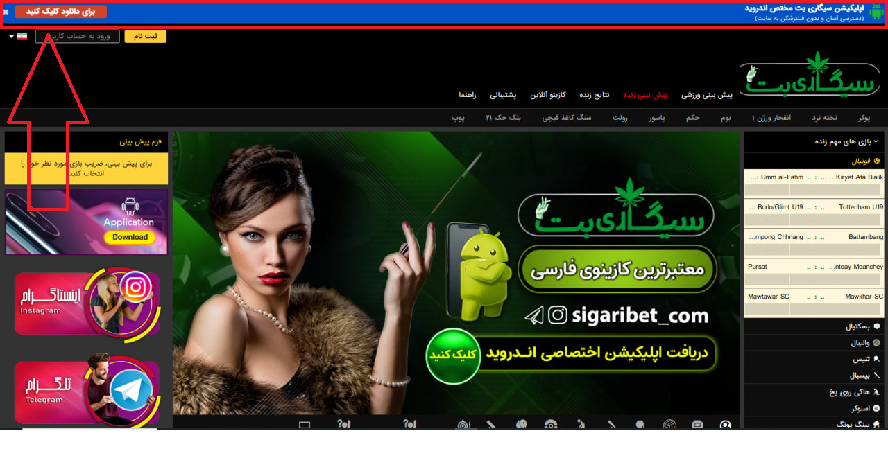 ابتدا وارد لینک بدون فیلتر و معتبر سیگاری بت شوید. (همیشه از آدرس های رسمی استفاده کنید تا دچار سایت های جعلی نشوید).