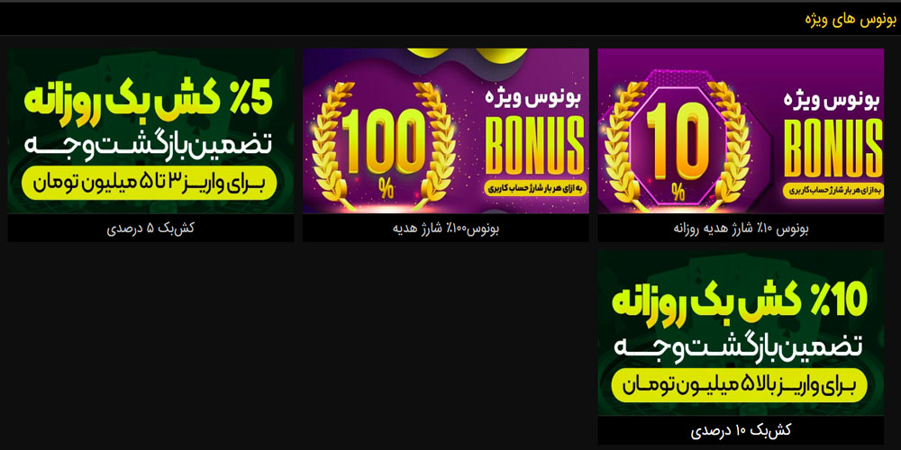 | کش بک ۱۰٪ | واریز بالای ۵ میلیون تومان | بازگشت بیشتر برای واریزهای بالا |