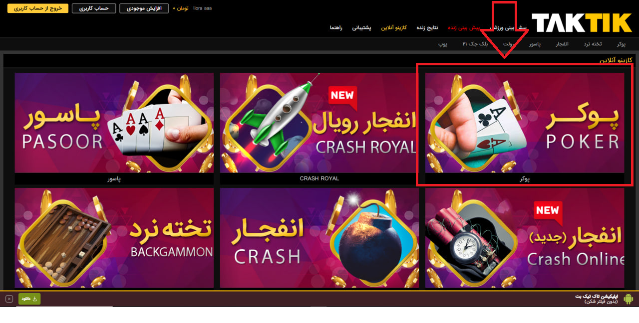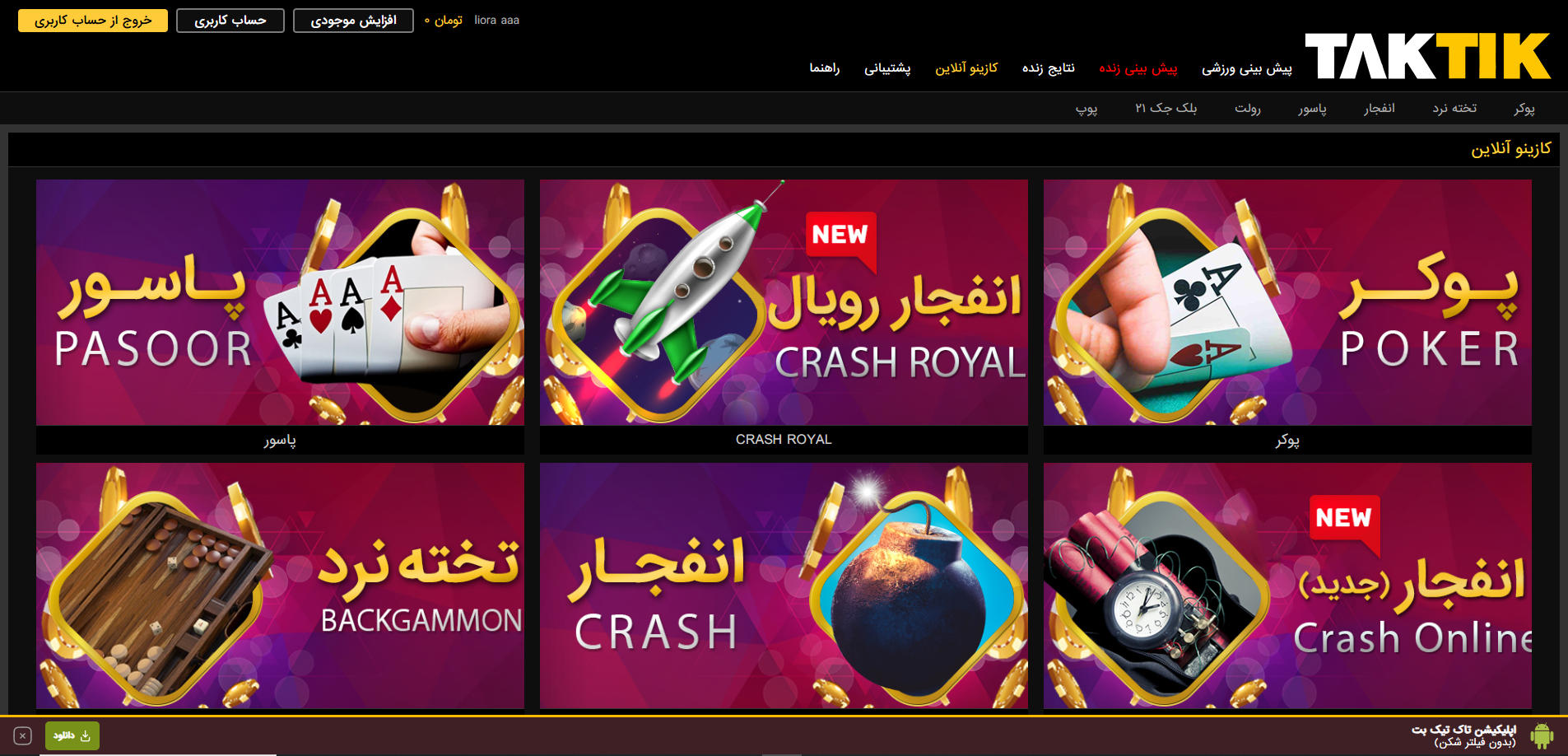 سایت Tak Tik Bet یکی از گزینه های موجود برای کاربرانی است که تجربه شرط بندی دارند و به دنبال محیطی متنوع و کاربر پسند هستند. این سایت امکاناتی مانند بازی های کازینویی، پیش بینی ورزشی و بازی های محبوب آنلاین را ارائه می دهد. طراحی رابط کاربری سایت ساده و قابل دسترسی است و کاربران می توانند بدون مشکل بخش های مختلف را مشاهده کنند.