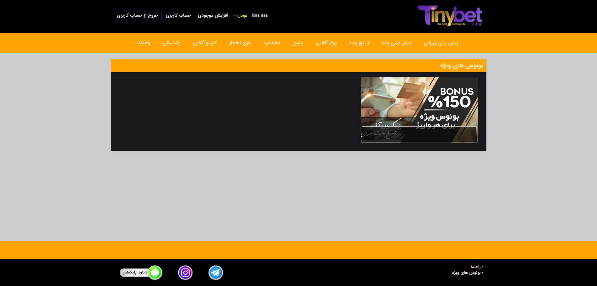 اپلیکیشن تاینی بت برای دسترسی سریع و آسان به تمام خدمات سایت.