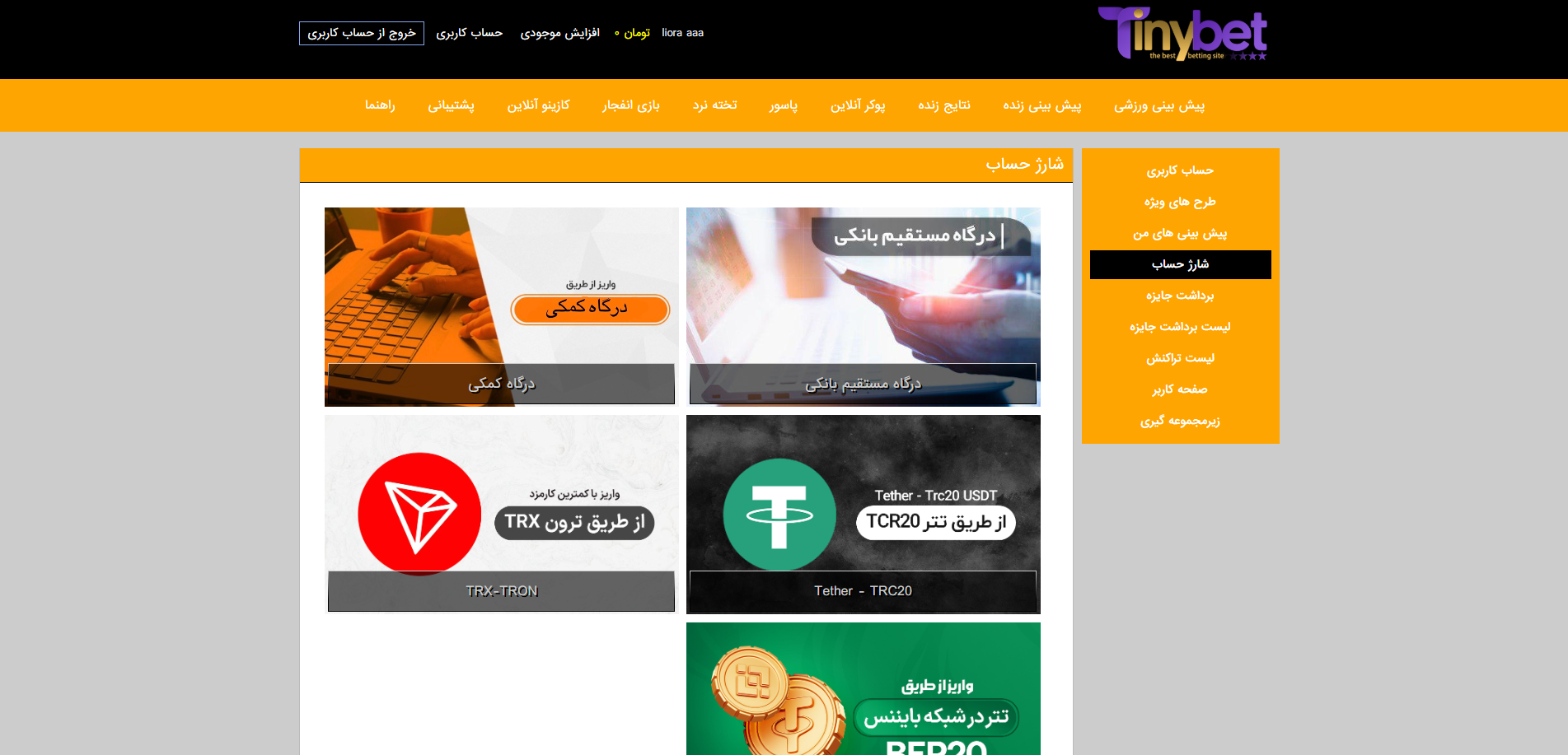 یکی از پرکاربردترین روش ها در سایت تاینی بت استفاده از درگاه مستقیم بانکی است. کاربر تنها با وارد کردن اطلاعات کارت بانکی شامل شماره کارت، تاریخ انقضا، CVV2 و رمز پویا می تواند حساب خود را در کوتاه ترین زمان شارژ کند. این روش به دلیل سادگی و آشنایی کاربران با آن همیشه جزو محبوب ترین گزینه ها در tiny bet محسوب می شود.