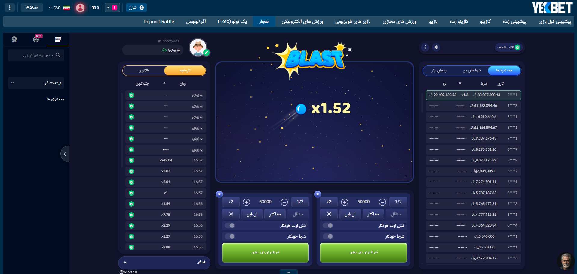 1. بازی انفجار: یکی از پرطرفدارترین بازی ها در کازینو YekBet که بر اساس ضریب لحظه ای انجام می شود و با مدیریت سرمایه می تواند سود بالایی داشته باشد.