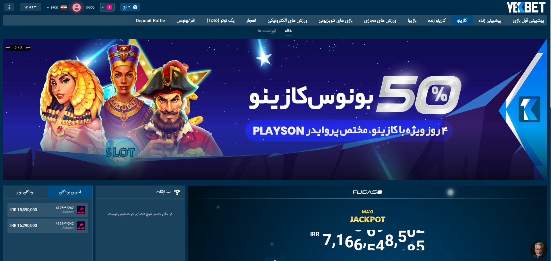 آموزش ورود و استفاده از بخش کازینو در Yek Bet